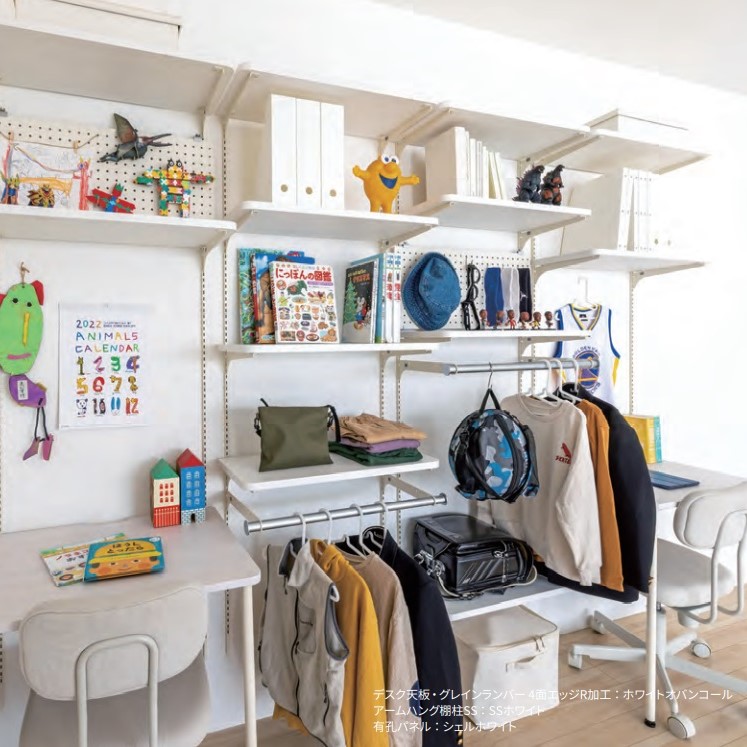 その他にも有孔ボードやパイプなどを使って、仕舞うものや使い勝手に合わせた収納を造ることができます。