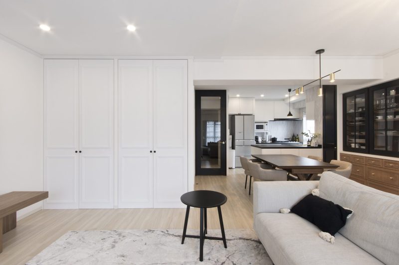 いかがでしょうか。天井までのハイドアにすることによって縦のラインができ、同じ天井の高さでも高く見えませんか?