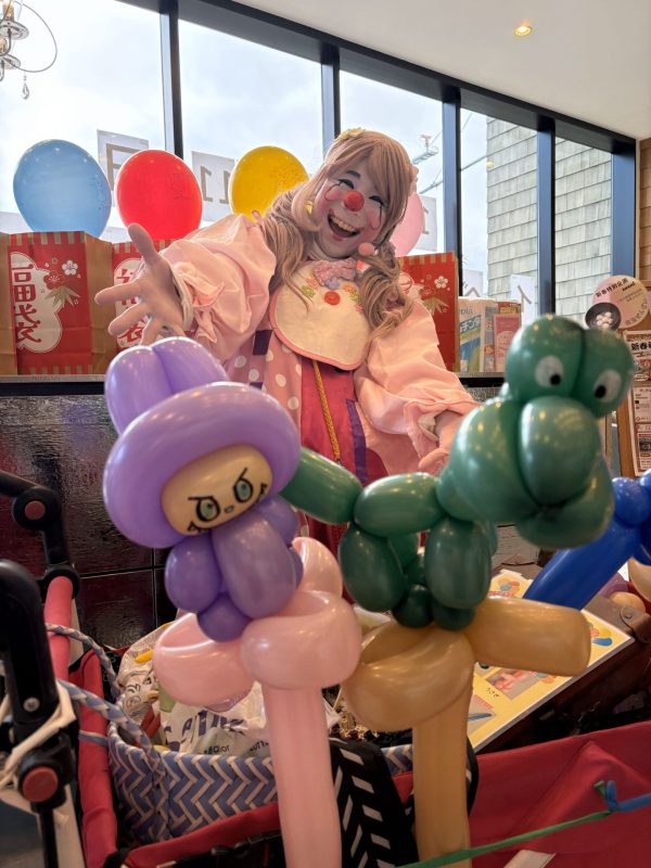 特に人気だったのは、バルーンアートでおなじみの「ピエコロさん」の来場。お子様と一緒にバルーン作品を選んだり、写真を撮ったりとにぎやかな時間になりました。また、白玉ぜんざいのふるまい、紅白餅のプレゼント、お菓子のつかみ取りなど、藤井寺ならではの“地域のイベント”として楽しんでいただけた様子でした☺