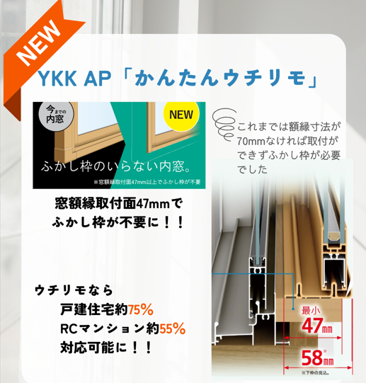 なんと、窓額縁取付面が47mmあれば、ふかし枠が不要に。
