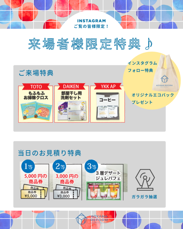 各社ショールームをご来場で、素敵な粗品をプレゼント✨