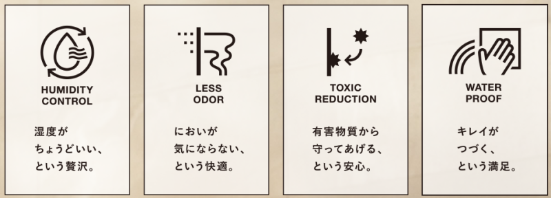 さらに、シックハウスの原因となる有害物質(ホルムアルデヒドなど)を吸着してくれる点も魅力です。