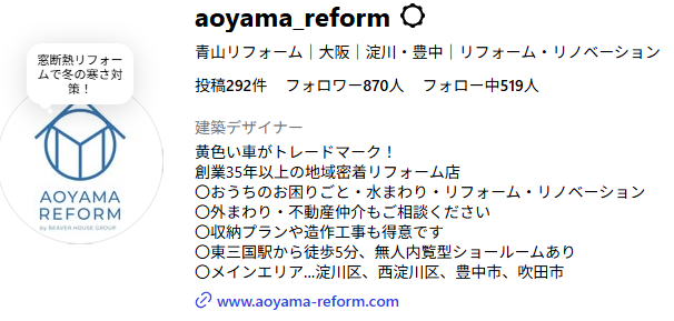 青山リフォームInstagram