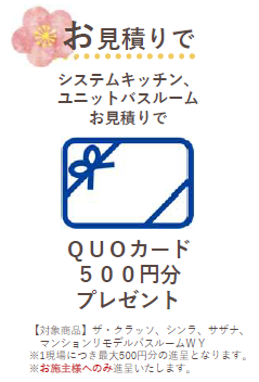 対象商品のお見積りをしていただいたお客様にQUOカード500円分をプレゼント✨