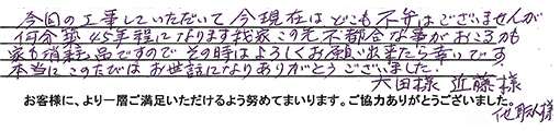 今回の工事していただいて今現在はどこも不便はございませんが、何分築45年程になります我家、この先不都合な事がおこるかも。