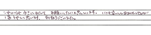 これからも永きにわたり、お願いしたいと思っています。いつも安心しておまかせできるのが1番うれしく思います。有り難うございました。