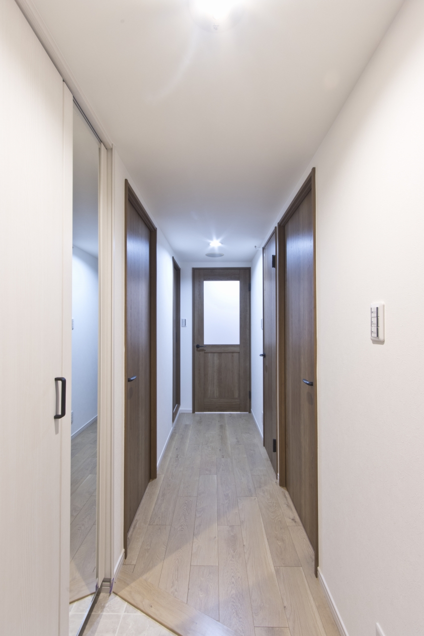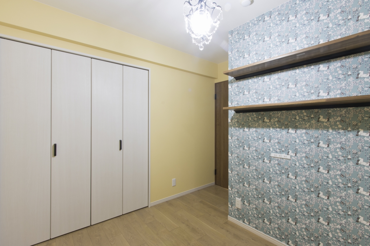 マンション 【奈良県/マンションリフォーム】実家へ移住。夫婦ふたりが 快適で理想的な空間へ 次前 ROOM PLANBEFOREAFTER DATA 所在地 奈良県 構造 RC造 築年数 25年 リフォーム面積 81.0㎡ 工期 2ヶ月 リフォーム費用 730万円 リフォーム部位 全面改装 BEFORE COMMENT奈良県/マンションリフォーム N様は関東にお住まいでしたが、お母さまが住んでいたご実家のマンションへ移住するためリフォームされました。 夫婦2 人で暮らすのに間取りを4LDK から3LDK に変更。洋室をLDKに取り込み、広々としたLDK を実現しました。隣接する和室は洋室に変更し、引き戸を開けるとより広い空間になります。キッチンまわりは特に収納にこだわり、カップボードの他に可動棚やニッチなどを設置。クロスはアクセントに北欧カラーや柄を取り入れ、これからの生活が楽しく快適になるリフォームとなりました。 玄関には一般的な下駄箱があったのですが、奥行を増やしシューズインクローゼットに変更しました。折れ戸を全開すると、壁一面に可動棚があり、靴はもちろん土間収納として色々な物が収納できるようになりました。LDK横の和室は洋室に変更したので、仏間は収納と同化させ、目立ちにくいデザインにしました。各部屋に可動棚やハンギングバーを設置し、細々とした物の収納はもちろん、雑貨やグリーンなどを飾ったり、吊るしたり出来るようになっています。 奥様の部屋はイエローを基調にグリーンのキャラクターが可愛いアクセントクロスを選定。デスクを置くスペースの壁面には、上部に固定棚2枚と見た目がすっきりとした横長のコンセントプレートを設置し、見た目と機能性にこだわった空間ができました。また、全ての部屋の窓に内窓を設置したことで、厳しい冬の寒さや結露の軽減にもなり、快適にお過ごし頂けます。 STAFF担当スタッフ 田中 -tanaka- READ MORE 明石 -akashi- READ MORE KEYWORDSカフェ風壁紙キッチン断熱ナチュラルマンション洗面500〜800万ふたり暮らし70㎡以上〜100㎡未満築25年以上〜築50年未満浴室トイレ廊下LDK北欧スタイル洋室暮らしやすい・住みやすい癒し・くつろぎ収納玄関家事ラク機能的内装間取り変更 その他のリフォーム実例集【大阪市/マンションリフォーム】個室もしっかり、LDKはのびやかに。角部屋を最大限に活かす住まい大阪市 Y様邸【大阪市/マンションリフォーム】「夫婦それぞれの暮らし方」60歳からの全面リフォーム大阪市 U様邸【大阪市/マンションリフォーム】暮らしやすさと心地よさを両立したジャパンディ空間T様邸【八尾市/戸建てリフォーム】定年を迎えて向き合った「これからの住まい」T様邸 リフォーム実例集一覧へ戻る