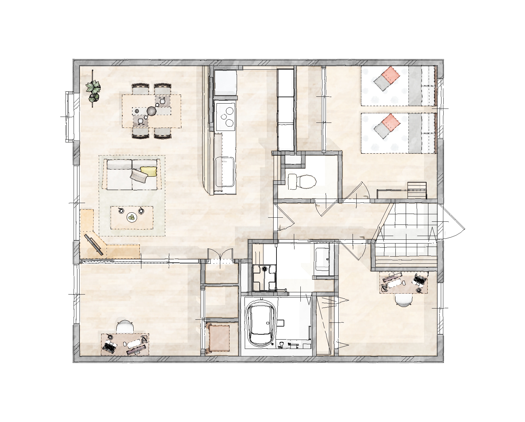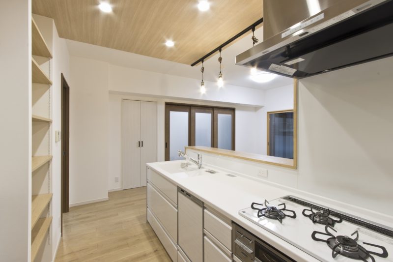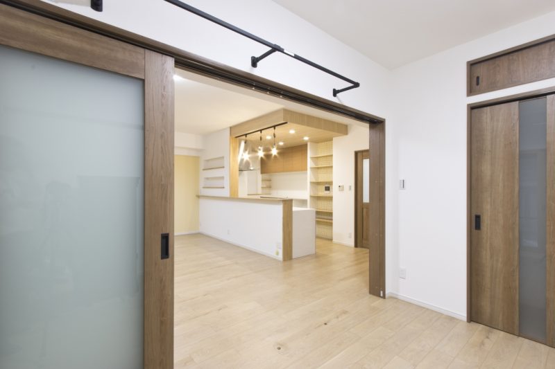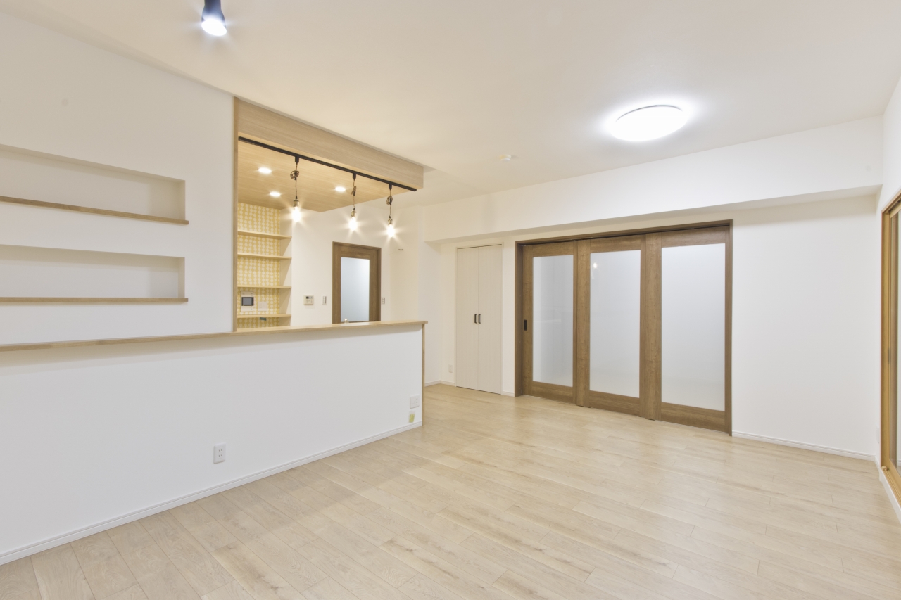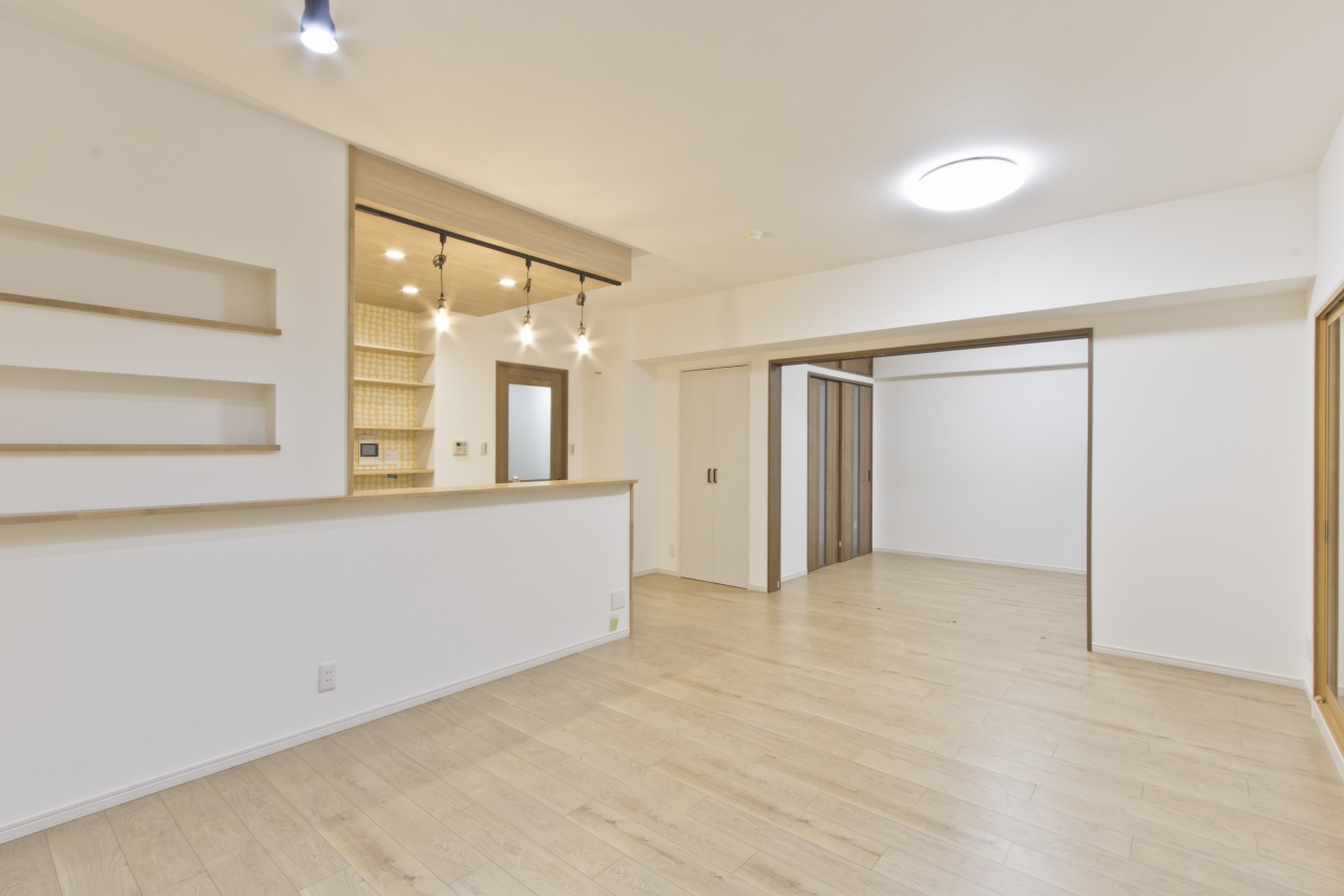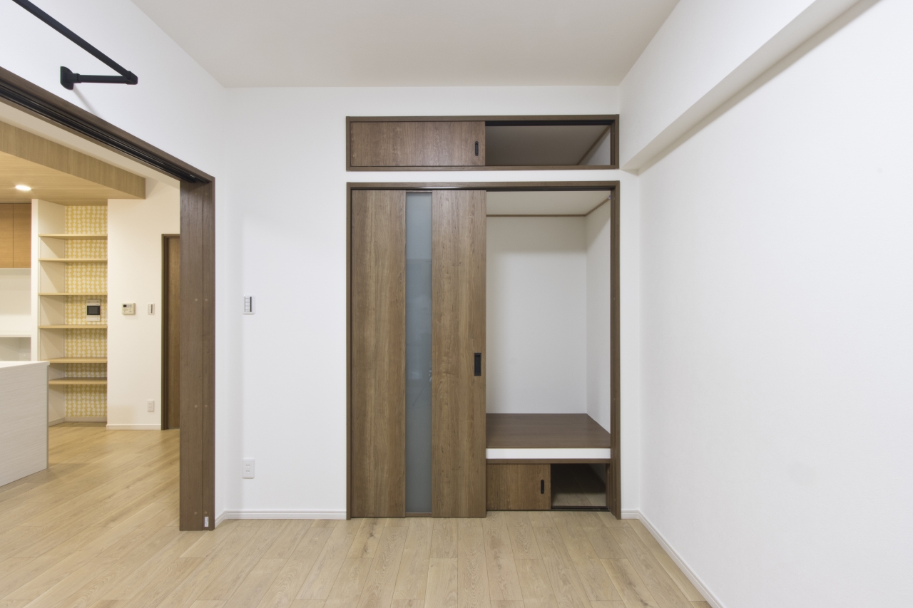 TOPリフォーム実例集【奈良県/マンションリフォーム】実家へ移住。夫婦ふたりが 快適で理想的な空間へ マンション 【奈良県/マンションリフォーム】実家へ移住。夫婦ふたりが 快適で理想的な空間へ 次前 ROOM PLANBEFOREAFTER DATA 所在地 奈良県 構造 RC造 築年数 25年 リフォーム面積 81.0㎡ 工期 2ヶ月 リフォーム費用 730万円 リフォーム部位 全面改装 BEFORE COMMENT奈良県/マンションリフォーム N様は関東にお住まいでしたが、お母さまが住んでいたご実家のマンションへ移住するためリフォームされました。 夫婦2 人で暮らすのに間取りを4LDK から3LDK に変更。洋室をLDKに取り込み、広々としたLDK を実現しました。隣接する和室は洋室に変更し、引き戸を開けるとより広い空間になります。キッチンまわりは特に収納にこだわり、カップボードの他に可動棚やニッチなどを設置。クロスはアクセントに北欧カラーや柄を取り入れ、これからの生活が楽しく快適になるリフォームとなりました。 玄関には一般的な下駄箱があったのですが、奥行を増やしシューズインクローゼットに変更しました。折れ戸を全開すると、壁一面に可動棚があり、靴はもちろん土間収納として色々な物が収納できるようになりました。LDK横の和室は洋室に変更したので、仏間は収納と同化させ、目立ちにくいデザインにしました。各部屋に可動棚やハンギングバーを設置し、細々とした物の収納はもちろん、雑貨やグリーンなどを飾ったり、吊るしたり出来るようになっています。 奥様の部屋はイエローを基調にグリーンのキャラクターが可愛いアクセントクロスを選定。デスクを置くスペースの壁面には、上部に固定棚2枚と見た目がすっきりとした横長のコンセントプレートを設置し、見た目と機能性にこだわった空間ができました。また、全ての部屋の窓に内窓を設置したことで、厳しい冬の寒さや結露の軽減にもなり、快適にお過ごし頂けます。 STAFF担当スタッフ 田中 -tanaka- READ MORE 明石 -akashi- READ MORE KEYWORDSカフェ風壁紙キッチン断熱ナチュラルマンション洗面500〜800万ふたり暮らし70㎡以上〜100㎡未満築25年以上〜築50年未満浴室トイレ廊下LDK北欧スタイル洋室暮らしやすい・住みやすい癒し・くつろぎ収納玄関家事ラク機能的内装間取り変更 その他のリフォーム実例集【大阪市/マンションリフォーム】個室もしっかり、LDKはのびやかに。角部屋を最大限に活かす住まい大阪市 Y様邸【大阪市/マンションリフォーム】「夫婦それぞれの暮らし方」60歳からの全面リフォーム大阪市 U様邸【大阪市/マンションリフォーム】暮らしやすさと心地よさを両立したジャパンディ空間T様邸【八尾市/戸建てリフォーム】定年を迎えて向き合った「これからの住まい」T様邸 リフォーム実例集一覧へ戻る 無料お見積もりはこちら