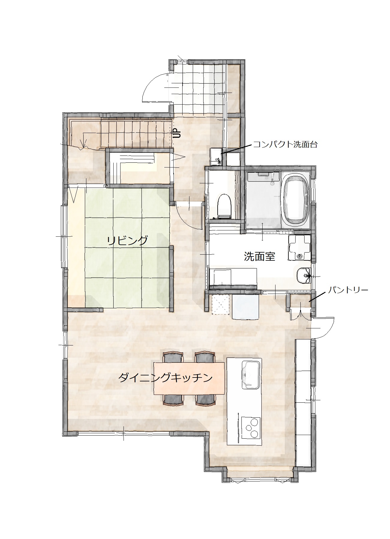 TOPリフォーム実例集【大阪市/戸建てリフォーム】パン教室でも大好評!ナチュラル感たっぷりの空間へ 戸建て 【大阪市/戸建てリフォーム】パン教室でも大好評!ナチュラル感たっぷりの空間へ 次前 ROOM PLAN1FBEFORE1FAFTER DATA 所在地 大阪市 構造 軽量鉄骨造 築年数 24年 リフォーム面積 67.1㎡ 工期 2ヶ月 リフォーム費用 1,182万円 リフォーム部位 1階全面改装 BEFORE COMMENT大阪市/戸建てリフォーム 3年ほど前から本格的に自宅でパン教室と週2日営業のパン屋さんを開店されたK様。材料や道具が増えるばかりで、冷凍庫はLDKに置くスペースがなく、仕方なく玄関に置いてありとても不便でした。またパン教室を開催する日は洗面室を使いづらい動線で、家族が我慢やストレスを抱えることも多かったそう。もっと快適な動線と機能的な収納で暮らしやすい家にしようとリフォームを決意されました。アイランドキッチンに変更し、ゆったりとパン教室が開けるようにしたり、収納もたっぷり取り、動線も良くなりました。デザイン面もご主人様こだわりの足ざわりのよい桧のフローリングや木目の下がり天井など、ナチュラル感たっぷりの北欧風な空間に仕上がり、パン教室の生徒さんにも大好評です。 お客様の声を見る STAFF担当スタッフ 田村 -tamura- READ MORE 田中 -tanaka- READ MORE 早金 -hayagane- READ MORE KEYWORDS戸建てキッチン壁紙ナチュラルカフェ風洗面50㎡以上〜70㎡未満築10年以上〜築25年未満タイルバリアフリーファミリー浴室トイレ1000〜1500万廊下照明・間接照明趣味おもてなしLDK北欧スタイル暮らしやすい・住みやすい和室ニッチ癒し・くつろぎ収納家事ラク玄関機能的内装子育て間取り変更 その他のリフォーム実例集【大阪市/マンションリフォーム】個室もしっかり、LDKはのびやかに。角部屋を最大限に活かす住まい大阪市 Y様邸【大阪市/マンションリフォーム】「夫婦それぞれの暮らし方」60歳からの全面リフォーム大阪市 U様邸【大阪市/マンションリフォーム】暮らしやすさと心地よさを両立したジャパンディ空間T様邸【八尾市/戸建てリフォーム】定年を迎えて向き合った「これからの住まい」T様邸 リフォーム実例集一覧へ戻る 無料お見積もりはこちら