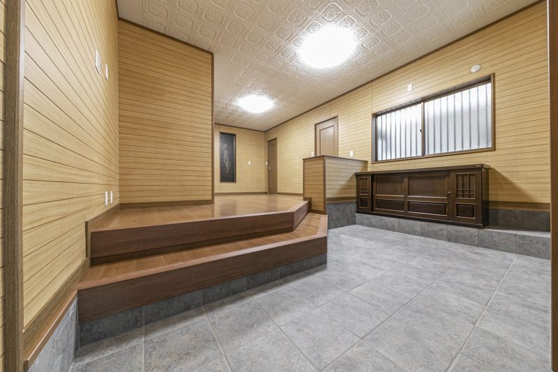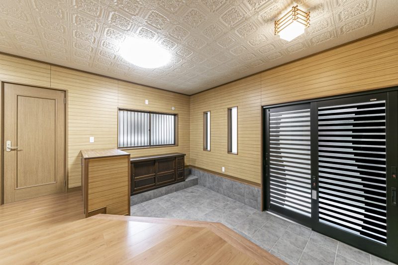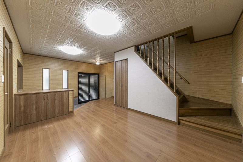 戸建て 【東大阪市/戸建てリフォーム】広々玄関土間と快適リビングで心地よい我が家に 次前 ROOM PLAN1FBEFORE1FAFTER2FBEFORE2FAFTER DATA 所在地 東大阪市 構造 木造 築年数 28年 リフォーム面積 112㎡ 工期 2ヶ月 リフォーム費用 930万円 リフォーム部位 水まわり・玄関・内装 BEFORE COMMENT東大阪市/戸建てリフォーム 築28年が経ち、色々と気になるところが出てきたS様。どうせやるならと水まわりを中心に、玄関やリビングも併せてリフォームをされました。 元々玄関ホールが広すぎたS様邸。思い切って玄関土間を広げ、自転車やバイクを中に入れられるようにしました。気に入っていた壁のプリント合板は、別の部屋でキレイに撤去したものを再利用しています。お家の顔である玄関はタイルにこだわり、格調高い雰囲気に仕上がりました。収納も造り付け、広さは残しながらすっきりと片付く玄関まわりになりました。階段が吹き抜けていて寒かったLDKは、壁とロールスクリーンで仕切り、寒さ暑さに対応できるようにしました。良いところは残しながら、不便なところをキレイにし、大満足なリフォームになりました。 お客様からの直筆メッセージ S様 お客様アンケートより めちゃくちゃ快適。リビングのダウンライト、玄関の土間がとても気に入りました。 すごく綺麗に仕上げていただき。感謝してます!ありがとうございました。 STAFF担当スタッフ 田中 -tanaka- READ MORE 明石 -akashi- READ MORE KEYWORDS壁紙戸建てキッチン断熱洗面シンプルタイル800〜1000万築25年以上〜築50年未満ファミリー浴室トイレ100㎡以上廊下階段クラシックLDK洋室和スタイル暮らしやすい・住みやすい収納癒し・くつろぎ玄関内装 その他のリフォーム実例集【大阪市/マンションリフォーム】個室もしっかり、LDKはのびやかに。角部屋を最大限に活かす住まい大阪市 Y様邸【大阪市/マンションリフォーム】「夫婦それぞれの暮らし方」60歳からの全面リフォーム大阪市 U様邸【大阪市/マンションリフォーム】暮らしやすさと心地よさを両立したジャパンディ空間T様邸【八尾市/戸建てリフォーム】定年を迎えて向き合った「これからの住まい」T様邸 リフォーム実例集一覧へ戻る