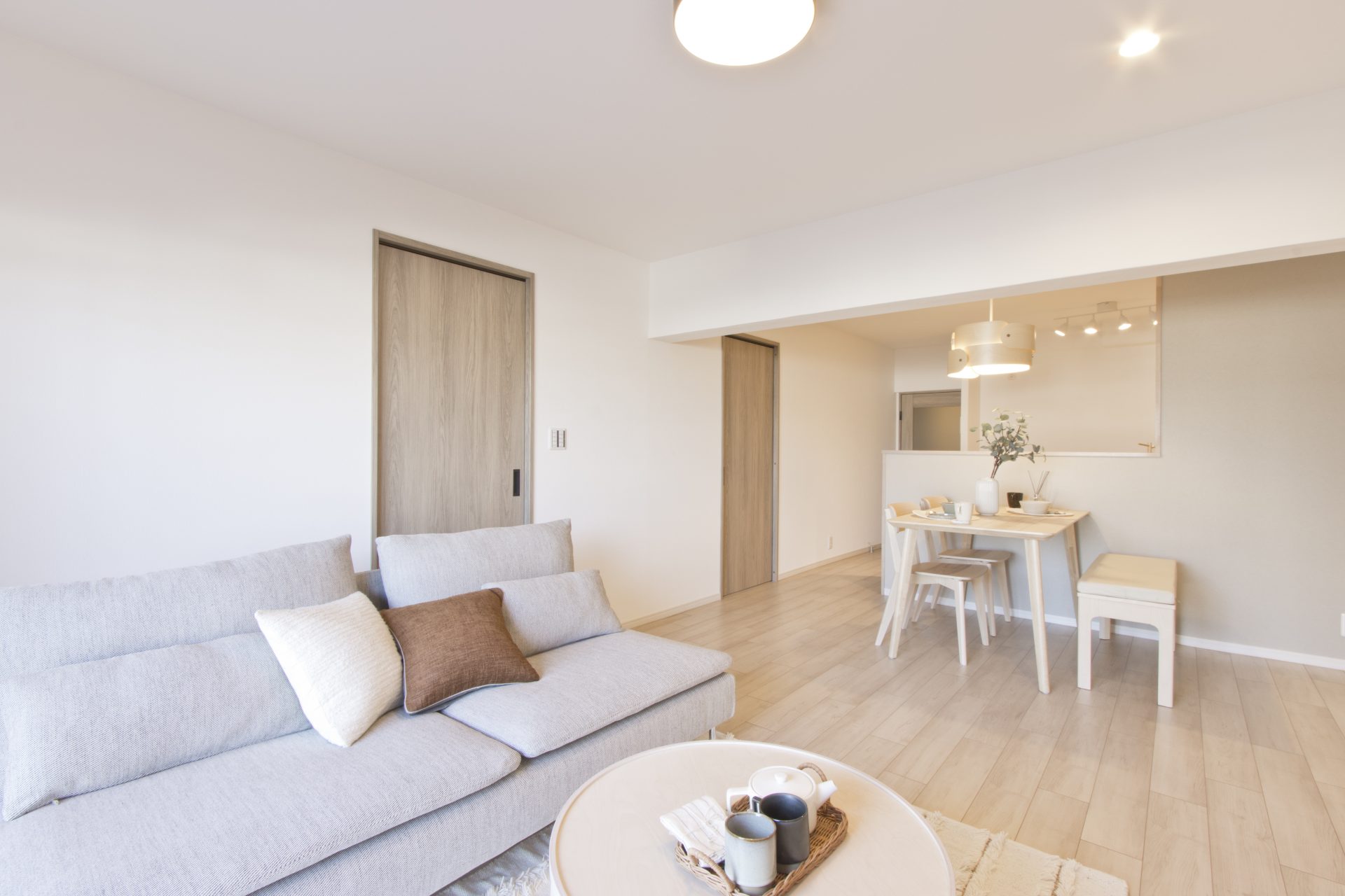 マンション 【大阪市/マンションリフォーム】暮らしやすさと心地よさを両立したジャパンディ空間 次前 ROOM PLANBEFOREAFTER DATA 所在地 大阪市 構造 RC造 築年数 47年 リフォーム面積 73.7㎡ 工期 2ヶ月 リフォーム費用 750万円 リフォーム部位 全面改装 BEFORE COMMENT大阪市/マンションリフォーム 和室の一部を取り込み、広々としたLDKへと間取り変更。ベランダからの光が室内まで届くようになり、明るく開放感のあるスペースに生まれ変わっています。各居室の収納はパイプや棚を取付け、収納力をしっかり確保。間取りの見直しによって、家族が自然と集まりやすく、団らんの時間を楽しめる住まいとなりました。 キッチンは対面式にし、リビングダイニングとのつながりを重視。料理をしながらでも家族との会話が弾む、コミュニケーションが取りやすい設計になっています。 さらに全体のインテリアはナチュラルな北欧テイストをベースとしたジャパンディスタイルでコーディネート。淡い木目のフローリングや建具を選ぶことで、落ち着いた印象と明るい雰囲気を両立しました。 和室を活かしながら現代的な暮らしに合わせてアップデートし、快適さとデザイン性を兼ね備えた住まいへと仕上がっています。 STAFF担当スタッフ 東 -azuma- READ MORE 早金 -hayagane- READ MORE KEYWORDSナチュラルカフェ風キッチン洗面マンション500〜800万築25年以上〜築50年未満浴室70㎡以上〜100㎡未満トイレ廊下LDK洋室北欧スタイル和室暮らしやすい・住みやすい癒し・くつろぎ玄関内装間取り変更 その他のリフォーム実例集【大阪市/マンションリフォーム】「夫婦それぞれの暮らし方」60歳からの全面リフォーム大阪市 U様邸【八尾市/戸建てリフォーム】定年を迎えて向き合った「これからの住まい」T様邸【大阪府/マンションリフォーム】中古を買って、理想の我が家へリノベーションS様邸【大阪府/マンションリフォーム】愛犬と暮らす 家族みんなが快適に過ごせる家Y様邸 リフォーム実例集一覧へ戻る